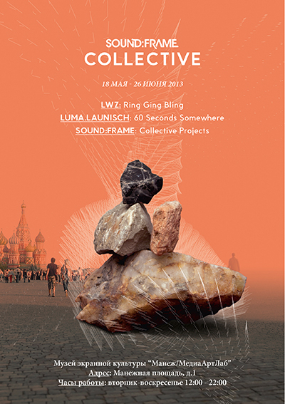 Куратором выставки стала создатель фестиваля sound:frame Ева Фишер (Eva Fischer), которая объединила идеей коллективности сразу нескольких австрийских видеохудожников: LWZ и luma.launisch. Именно тема коллективного творчества стала основой фестиваля в 2013 году: для LWZ итогом участия в нем стало создание инсталляции и перформанса “Ring Ging Bing”, а для luma.launisch развитие поэтической истории “60 Seconds Somewhere”. Обе работы будут представлены в Москве вместе с другими проектами sound:frame.
