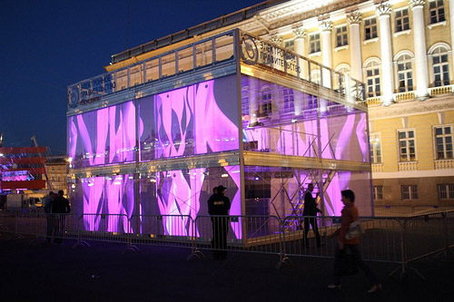 С 21 по 25 июня 2012 в Санкт-Петербурге на Дворцовой площади было построено уникальное сооружение - передвижной стеклянный павильон, который днем работал в режиме информационного центра, а по вечерам превращался в арт-объект, на стены которого проецировались работы российских и зарубежных медиа и видео художников. Художники-участники программы: Франсуа Фогель, Тони Хилл, Илья Коробков, Пол Клипсон, Эрик Олофсен, Перри Бард, Галина Шевченко, Арев Манукян, Роман Мокров, Нина Куртела, Роберт Арнольд, Крис Окли, Ивен Сибенс.