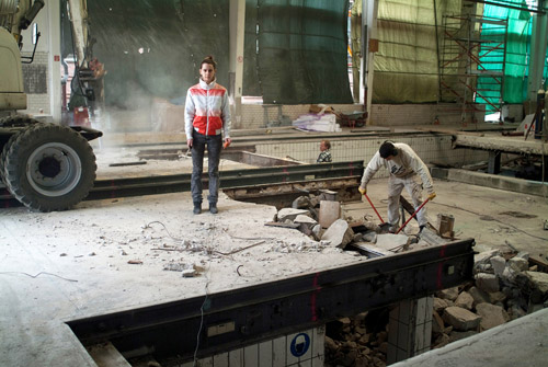 Документация перформанса, длившегося шесть месяцев в помещении, которое за это время было перестроено из склада в танцевальный центр в Веддинге, Берлин. Для создания видео ежедневно делалось порядка 200 фотографий художницы, находящейся в центре строящейся сцены в процессе монтажных работ.